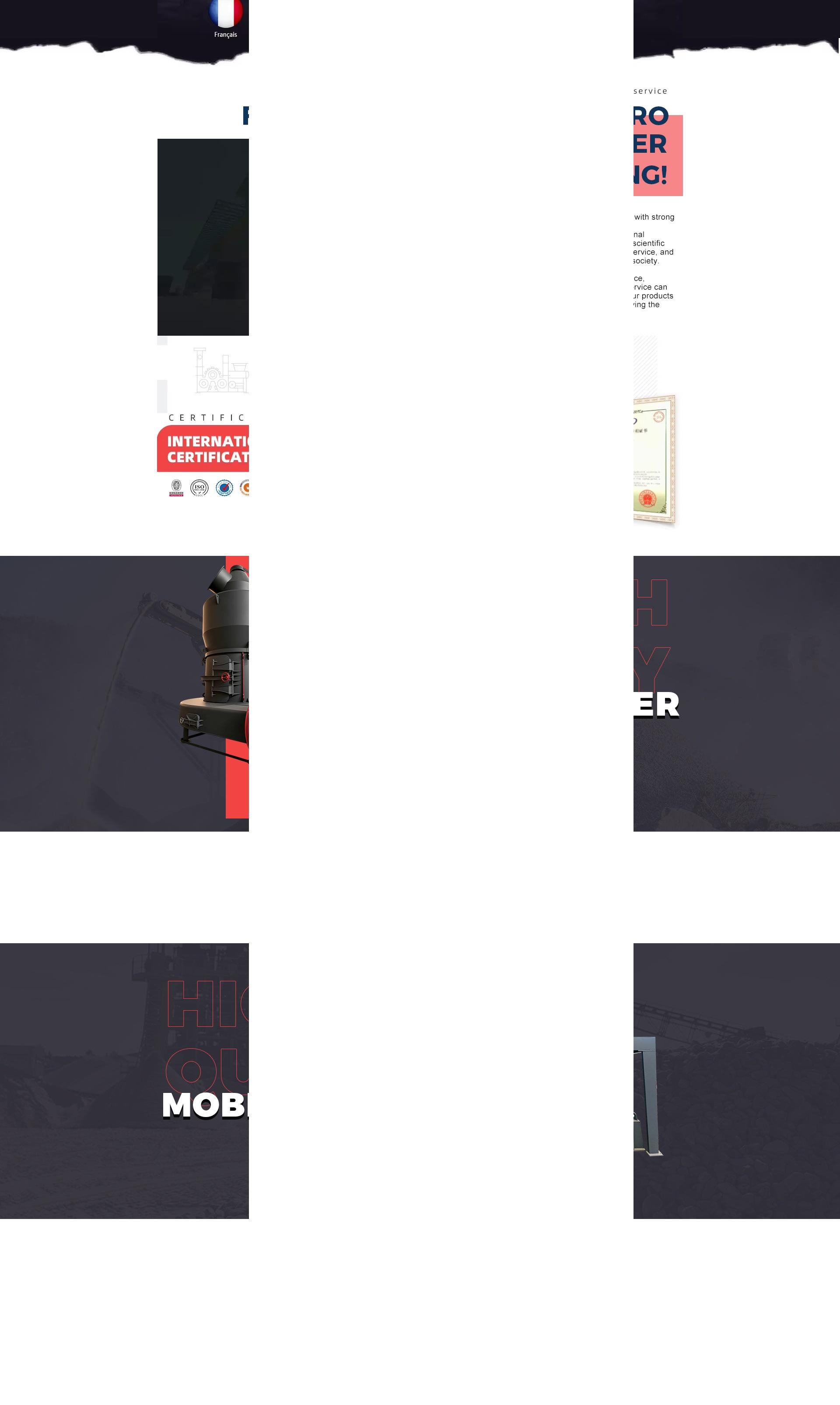 Productos principales:Raymond Mill, molino ultrafino, planta de trituración móvil, trituradora, máquina de fabricación de arena móvil